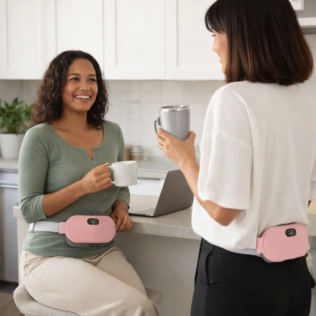 Absolutely! SheRelief™ was designed specifically for discreet, on-the-go use. The slim profile sits flat against your body and the soft belt adjusts to fit comfortably under jeans, work clothes, scrubs, or dresses. Our customers wear it to the office, to class, even to weddings—and nobody knows.